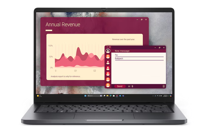 Portable 14-inch laptop with a sleek, modular design and enhanced durability to meet the demands of your workday.